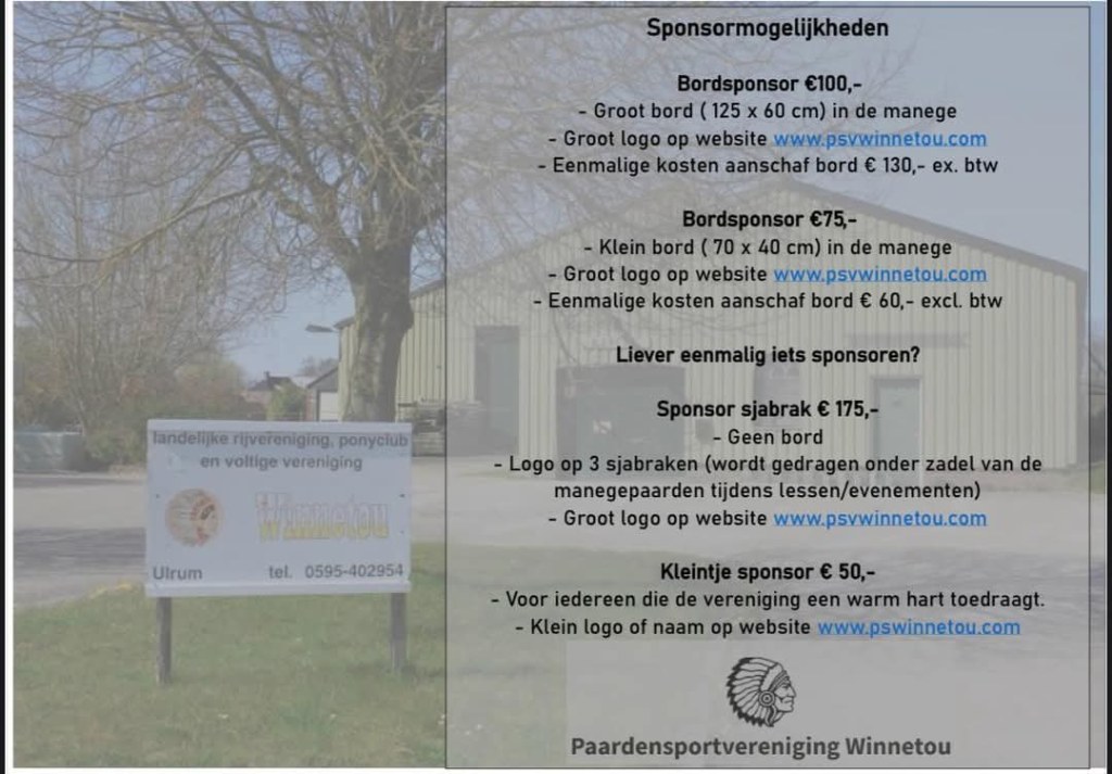 heeft u vragen mail dan naar: sponsorwinnetou@gmail.com